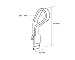 Product name: Hanging hook L Art. 713008 Dimensions: Dovetail fix size 12 mm ESL Manufacturer: Universal holder Standard colour: Transparent Standard material: Polycarbonate (PC) MOQ: 100 Price excluding VAT: 25.00 EUR per pack of 100 pcs. Price per pcs. excluding VAT: 0.25 EUR