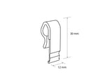 Product name: Hanging hook S Art. 713019 Dimensions: Dovetail fix size 12 mm ESL Manufacturer: Universal holder Standard colour: Transparent Standard material: Polycarbonate (PC) MOQ: 100 Price excluding VAT: 20.00 EUR per pack of 100 pcs. Price per pcs. excluding VAT: 0.20 EUR N.B. Package: